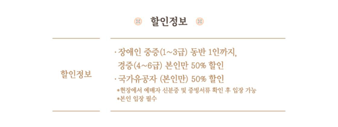 • 티켓 가격 - 일반 60,000원 / 장애인&국가유공자 등 50% 할인 시 30,000원