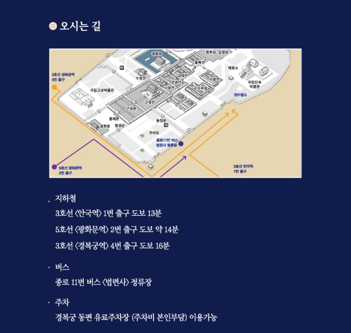 • 휴무 - 매주 월, 화 휴무 및 4월 26일 궁중문화축전 개막식으로 인한 임시 휴무