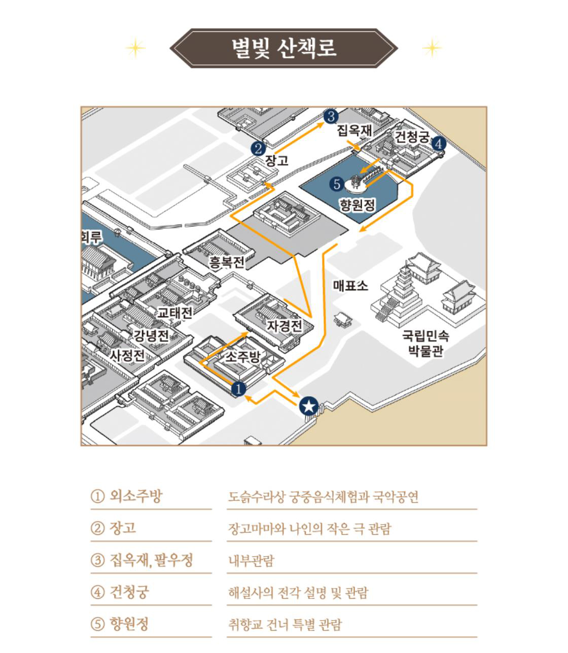 • 내용 - 경복궁 소주방 궁중음식체험, 북측권역 전각에 대한 해설